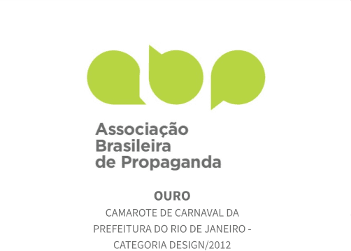 Projeto premiado com o Ouro pela ABP para o Camarote da Sapucaí da Prefeitura do Rio de Janeiro no maior carnaval do mundo.